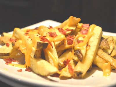 Las mas ricas y crocantes papas fritas con cheddar y tocino