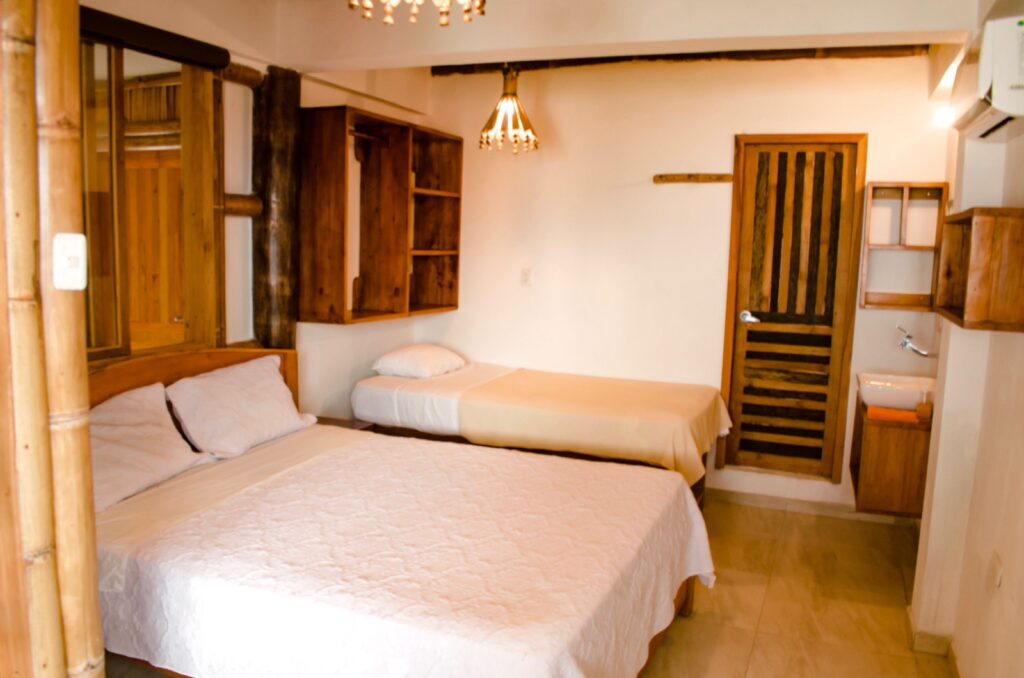 – 1 Cama de 2 1/2 Plazas – Aire acondicionado – Mini nevera – Vista Al Mar – Baño privado – Agua Caliente – Wifi